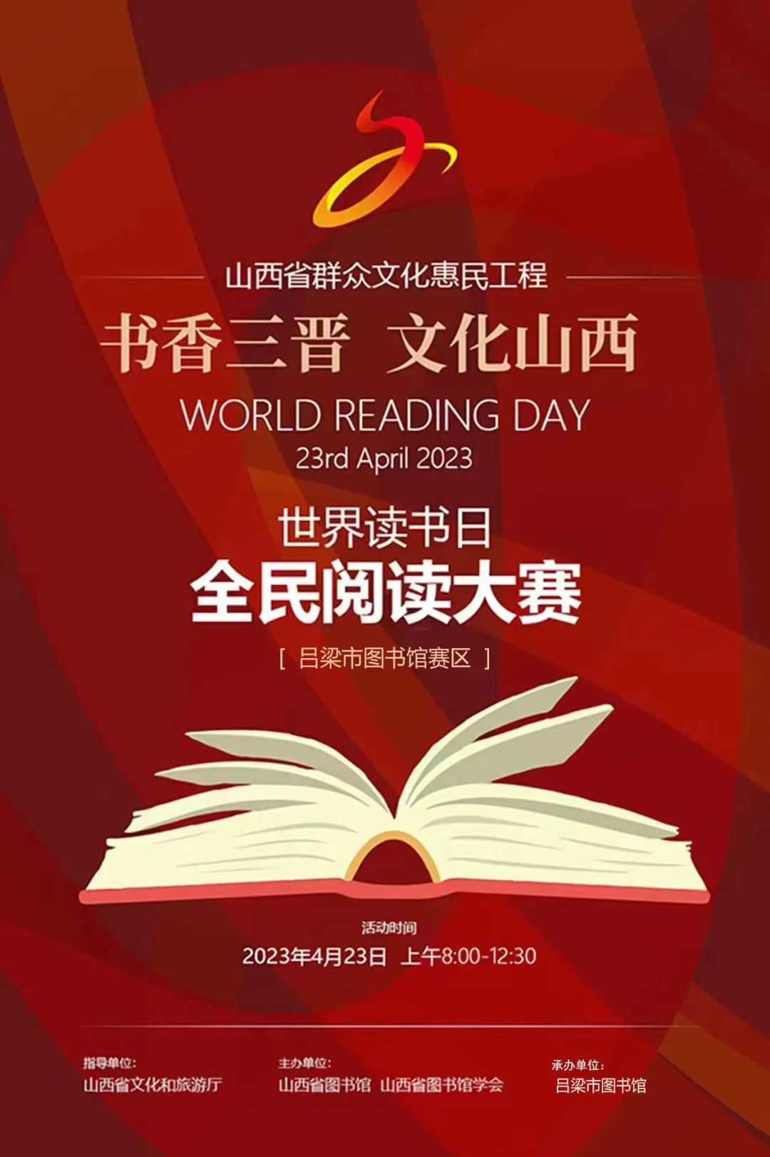 今年的世界讀書日,呂梁市圖書館組織參加山西省圖書館舉辦的2023年山西省群眾文化惠民工程“書香三晉 文化山西”世界讀書日全民閱讀大賽,為大家提供一場新鮮特別、精彩紛呈的閱讀盛宴。