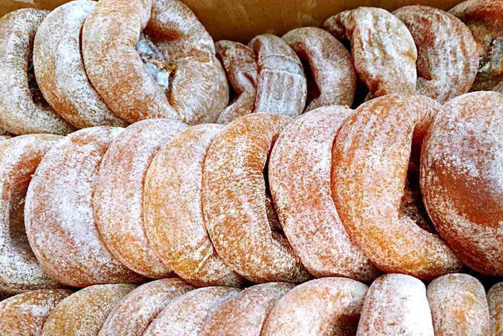 青柿柿餅:以青柿加工的柿餅,無(wú)核、綿軟、餅霜厚,掰開(kāi)能拉出30多厘米長(zhǎng)的油絲,放在碗里沖上茶水,再蓋住碗口,幾分鐘后便完全溶化為湯汁,色似金湯甜如蜜。