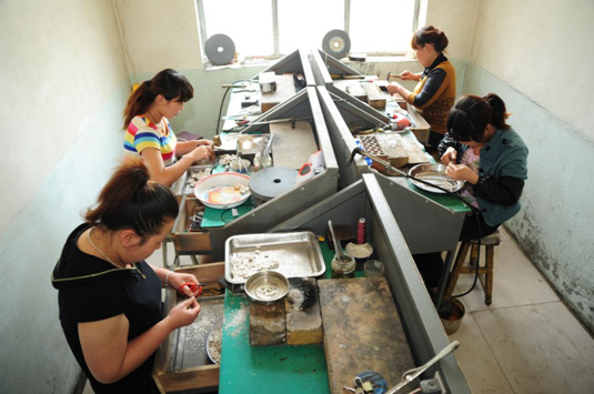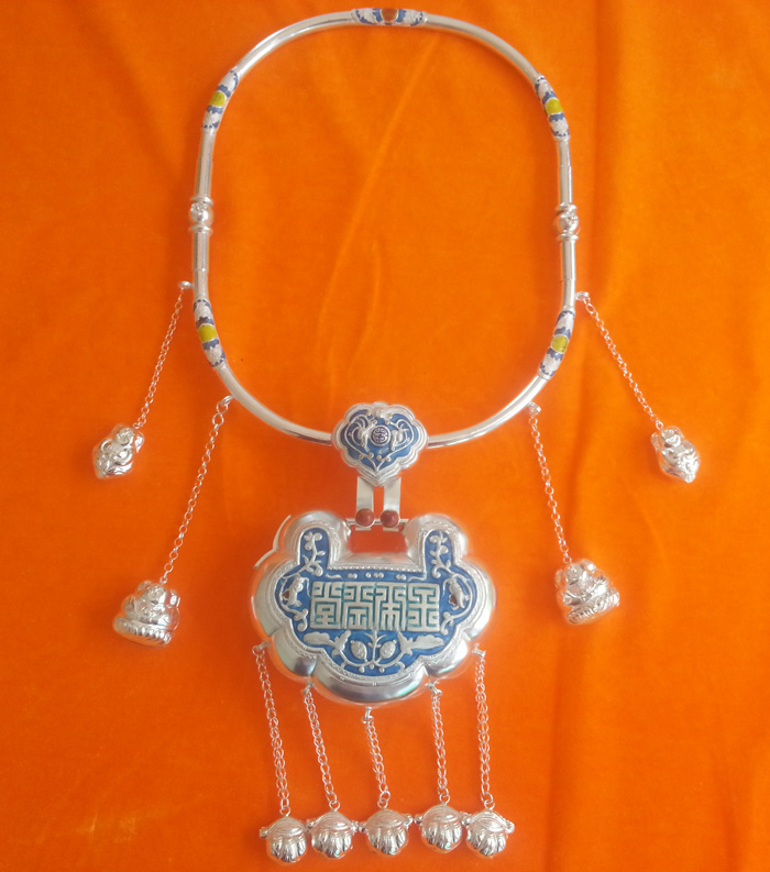 銀器制做歷史悠久,是中華傳統(tǒng)文化中的一顆明珠,歷經各代,興于明清,隨著晉商的興起,金銀首飾在晉中、交城民間十分流行,婦女裝飾、兒童裝飾、日常用品、比比皆是琳瑯滿目,市場非常廣泛,據(jù)民國政府實業(yè)部1936年《中國實業(yè)志.山西省》統(tǒng)計,交城縣銀匠鋪有寶興長、廣義興、德生厚,合計資本5600銀元,員工24人,制作首飾類銀器,耳環(huán)、戒指、項圈、銀鎖、手鐲、葫蘆、三件牌及包金首飾。年產值6568銀元。這些銀飾品的加工制做,傳承古老的手工、工藝。使用了熔化、澆鑄、開皮、起型、雕刻、焊接、包金、點翠等技術,采用了鉤、臺、踩、絲、脫等技法,型體大度、多樣、物件大氣厚重,構思巧妙、別具一格,蘊藏了濃郁的地方特色,反映出地方金銀飾品漫長的發(fā)展過程。隨著改革開放,人民生活水平的提高,交城金銀首飾業(yè)迅速發(fā)展,經老技師培養(yǎng)帶徒,結合現(xiàn)代化設備工藝,使金銀飾品更加光彩奪目。其金銀本身的價值外,再加傳統(tǒng)的加工、工藝,具有很高的工藝價值和收藏價值。因此,歷經千百年,金銀飾品仍受當?shù)厝嗣竦南矚g、愛戴。