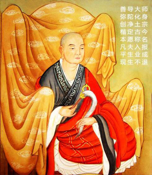 善導師事道綽四年余。道綽圓寂,善導移住帝京長安,大弘凈土,廣行教化。寫了十萬卷《彌陀經》,畫了300壁凈土變相,感人至深,為凈土法門作出巨大貢獻。著有《觀無量壽經疏》4卷、《往生禮贊偈》1卷、《凈土法事贊》2卷、《般舟贊》1卷、《觀念法門》1卷。后《觀無量壽經疏》傳到日本,開創(chuàng)了日本的凈土宗。